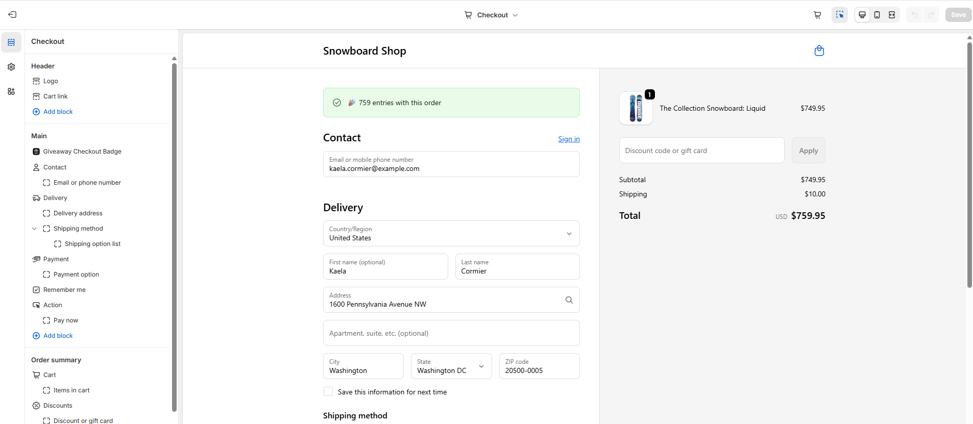 Checkout Badge (Shopify Plus Only): The Checkout App Block can only be added on Shopify Plus stores where checkout UI extensibility is available. This is a Shopify limitation, not a Giveaway Ninja restriction.