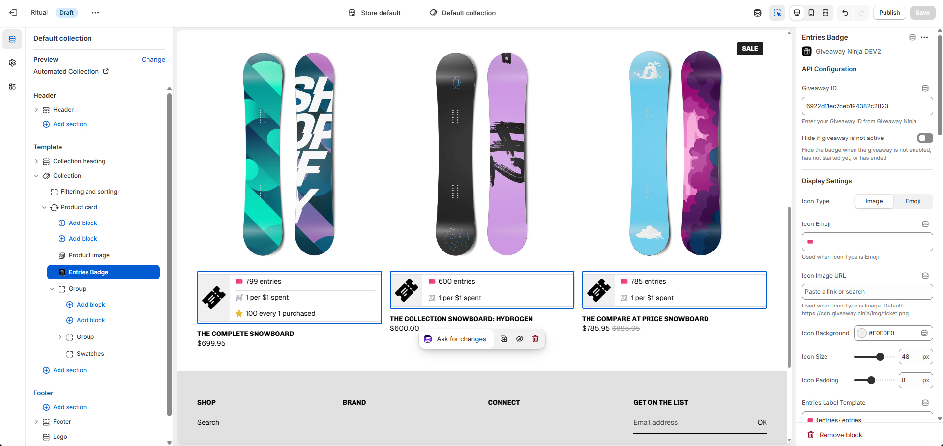 That's it! Your collection grid will now display giveaway entry counts on product cards.