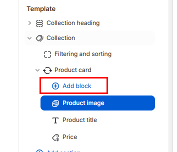 Note: If you don't see the option to add blocks to Product Cards, your theme doesn't support App Blocks on product cards. Use Method B below instead.