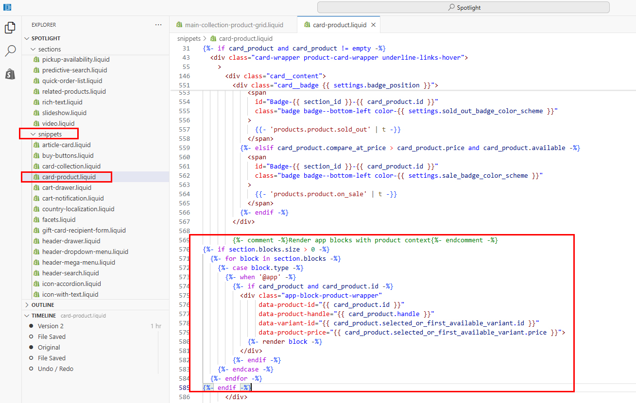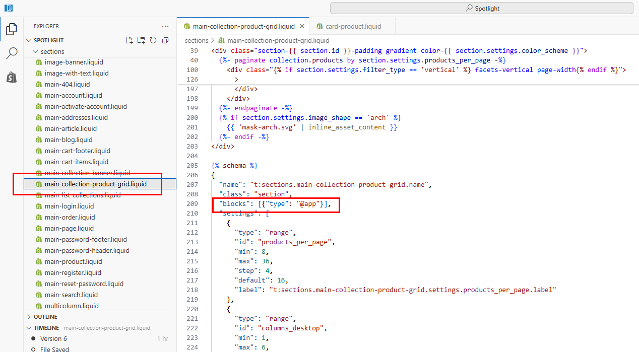 sections/main-collection-product-grid.liquidsections/collection-template.liquidsections/featured-collection.liquidsnippets/product-card.liquidsnippets/card-product.liquidStep 1: Add App Blocks to Schema